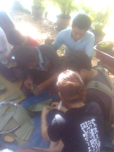 モロッポーの松本さんの奥様がバナナの葉っぱを集めてくださり、それでお皿を作ることになっていた。