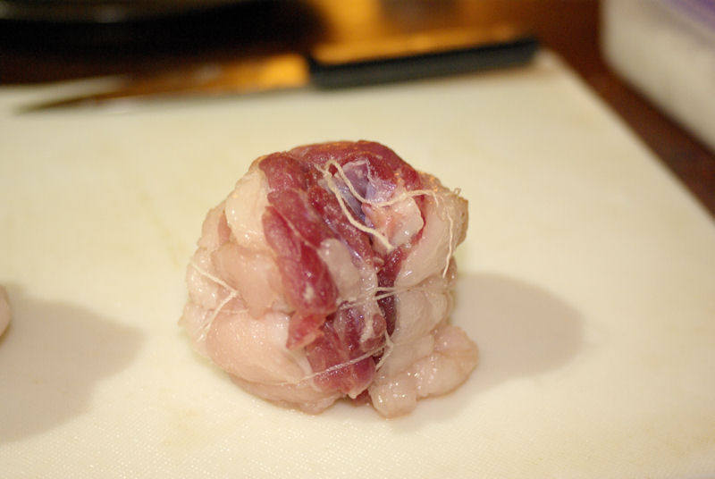 続いてそれを丸めて、タコ糸で縛る。