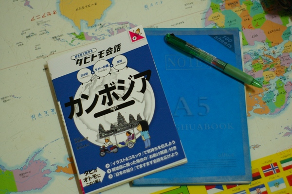 日本語、英語、クメール語で書かれてあり、現地の人と話をする時に役に立つ。