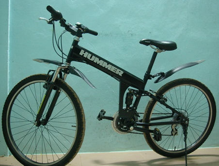 カンボジアでは、こういう前も後ろもサスペンション付きの自転車がよく走っている。