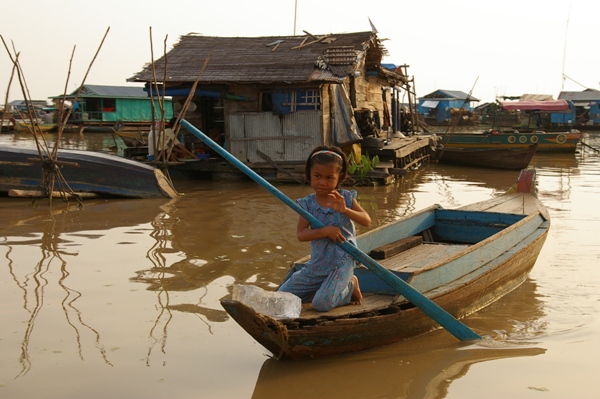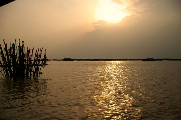 今頃が乾季の終わりに近く、一番湖が縮んでる時なので、結構な沖合にまで民家がある。
