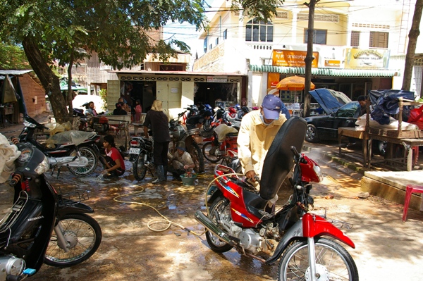 店のおやじに聞くと、前回はディスクを替えただけでそこは見なかったという。さらにその部品はシェムリアップには新しい物はなく、プノンペンまで行かないと行けないらしい。
