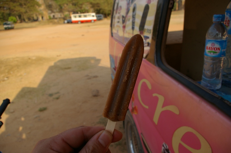 自転車を漕いで暑くなった体にアイスが沁みる。